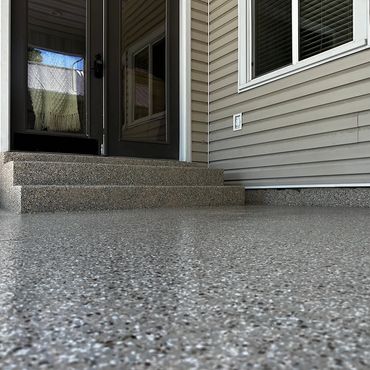 Polyaspartic is no doubt the way to go for any outdoor space. With the same look as epoxy, polyaspartic brings a new level of durability to your space and is UV stable. Talk to us about a one-day application!