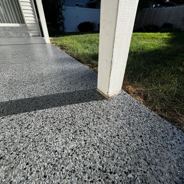 Patio and outdoor concrete resurfacing is a cost-effective solution to revitalize and transform worn-out or outdated concrete surfaces. It involves applying a new layer of polyaspartic flake or polyaspartic solid color coating onto existing concrete, giving it a fresh, modern, and aesthetically pleasing look.